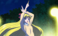 As they look around, they approach the Crystal Tower, where they find a sword embedded in a pedestal. The Sailor Guardians struggle to remove the sword, which is finally removed successfully by Sailor Venus. Immediately, a hologram of Queen Serenity appears before them, telling that the mystic sword was for the four Inner Sailor Guardians alone. She is glad to see Sailor Moon, calling her Serenity.