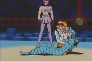 VesVes was the animal tamer of the Amazoness Quartet and among her many animals she had a fish, tiger, and hawk. Soon after their arrival in Azabu-Juban they noticed someone tried to break through their barrier and she sent the tiger, Tiger's Eye, into Tokyo to cause a ruckus and draw them out. Tiger's Eye drew out Super Sailor Moon and Super Sailor Chibi Moon. After discussing their new enemy they knew little about, VesVes decided to reward her pets and got PallaPalla to give them human forms. The Trio had the ability to freely transform between their animal and human forms.