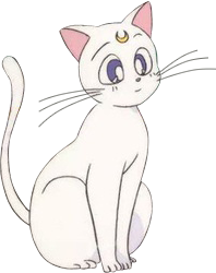 Artemis is a tomcat with short white fur, blue eyes, and long whiskers. Like Luna, he has a golden crescent moon on his forehead. He is occasionally depicted to be slightly bigger than Luna, although at other points they appear roughly the same size.
