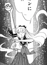 "Crescent Moon Power, Transform" is the command used by Minako Aino in Codename: Sailor V to disguise herself in various forms.