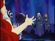 Queen Beryl was watching the scene where Nephrite died. Queen Beryl is very upset. Zoisite says that Tuxedo Mask has always appeared to save the Sailor Guardians. Zoisite wants to draw him out. Zoisite wants to get the two Rainbow Crystals that Tuxedo Mask had. Queen Beryl says that it is his last chance. Then, Kunzite comes and says that he would get Tuxedo Mask apart from the Sailor Senshi. Queen Beryl tells him to do it. Zoisite says that he would throw his life away for Kunzite.