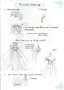 Princess Serenity shares the same appearance with her reincarnation, Usagi Tsukino; she has blue eyes, long wavy hair styled in two buns with flowing pigtails (though her hair was a silvery-white color as opposed to Usagi's blonde), and a golden crescent moon on her forehead to mark her status as a member of the royal family of the Silver Millennium.