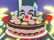 For his attack, he threw various kitchen items at his target. He also had an ability to materialize food out of nowhere, seeing as he created a chocolate cake in order to distract Eternal Sailor Moon. He was attacked by Star Gentle Uterus and was defeated by Starlight Honeymoon Therapy Kiss.