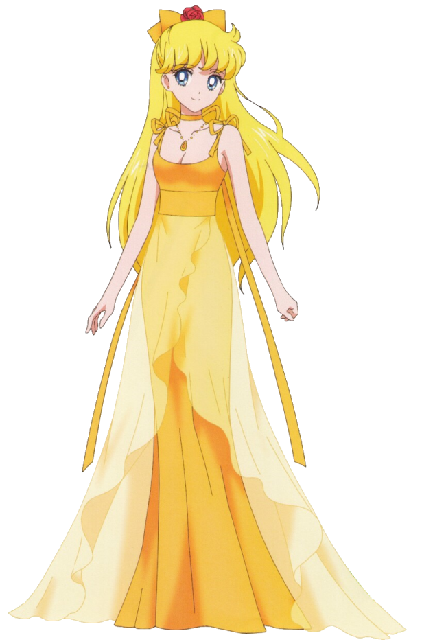 Princess Venus was the leader of those who protected Princess Serenity. She wore a yellow floor-length gown with ruffles and a choker, a necklace and high heels. She also has a yellow bow with a red rose at the center behind her head. She had in Magellan Castle which orbits Venus. Her people, including Adonis, helped in the fight against Queen Metalia.