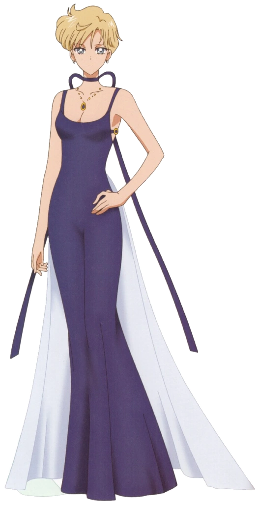 Princess Uranus wore a deep blue gown, high heels and a choker. Her duty was to protect the Solar System from outside invasion. She had Miranda Castle which orbits Uranus.