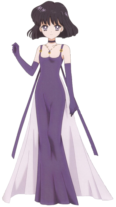 Princess Saturn wore a deep violet-blue gown with gloves, a choker necklace and high heels. She had the Titan Castle which orbits Saturn. Her job was to awaken during times of crisis and obliterate the kingdom and its enemies to pave the way for rebirth.